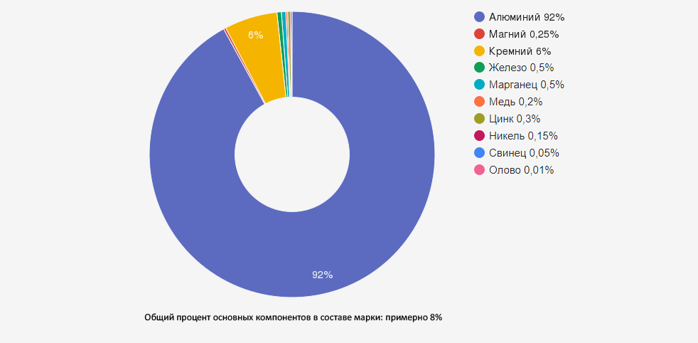 Согласно ГОСТ 1583-89, химический состав алюминиевого сплава АЛ9 имеет следующие параметры: