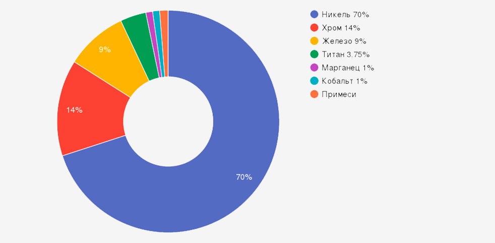 | Никель (Ni) | основа (> 70) | Формирует аустенитную матрицу, обеспечивает коррозионную стойкость |