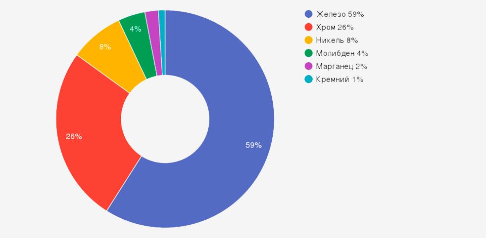 | Молибден (Mo) | 3,0-4,0 | Значительно повышает стойкость к питтинговой и щелевой коррозии, особенно в хлоридсодержащих средах |