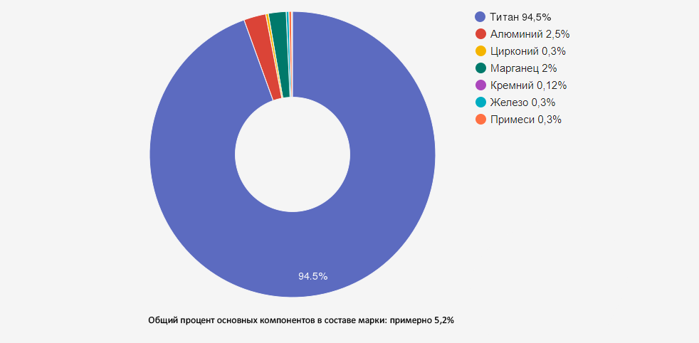 | Титан (Ti) | 94,33 - 97,0 | Основа сплава |