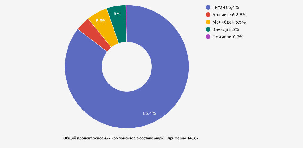 | Молибден (Mo) | 4,5-6,5* | Стабилизирует β-фазу, улучшает прокаливаемость, повышает прочность и термическую стабильность |
