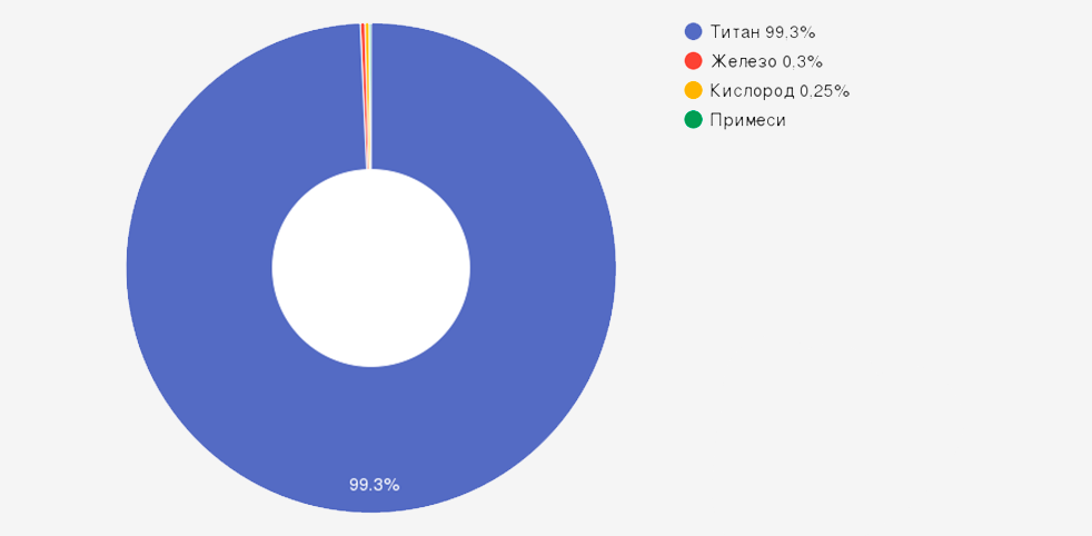 | Титан (Ti) | Основа (≥99,2%) | Формирует металлическую матрицу, определяет базовые свойства: низкую плотность, высокую коррозионную стойкость, биосовместимость |
